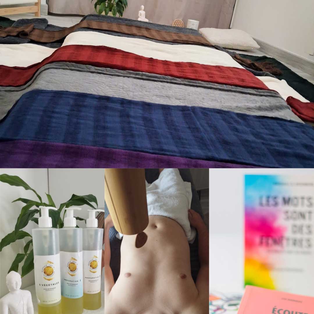 En fonction de vos besoins du moments et de mes ressentis, ce soin peut inclure massage, drainage,soin énergétique, sonothérapie, hammam, réfléxologie, rebozo, éetirements, shiatsu…